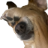 Ghibli style image of dog sitting near a woodpile in a grassy field